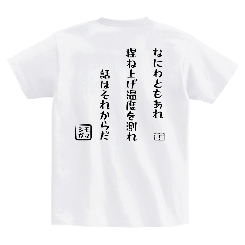 <送料無料> シモガマパン教室 【鉄の十則】 Tシャツ №01『捏ね上げ温度』(ホワイト)